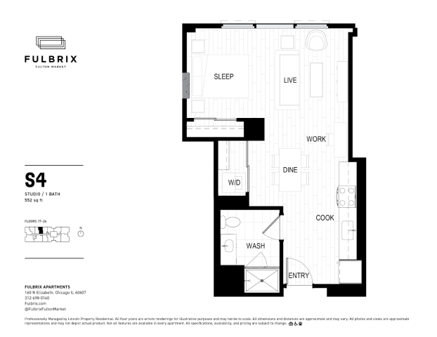 Choose from Studio, one, two, and three bedroom apartments–all with unique design details like matte-finish white and gray cabinetry, exposed concrete ceilings, and high-end appliance packages. Choose your apartment in the West Loop Chicago, IL and move into the now.